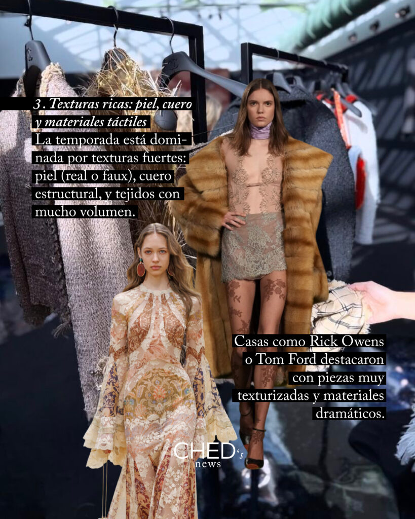 3-Texturas ricas: piel, cuero y materiales táctiles.