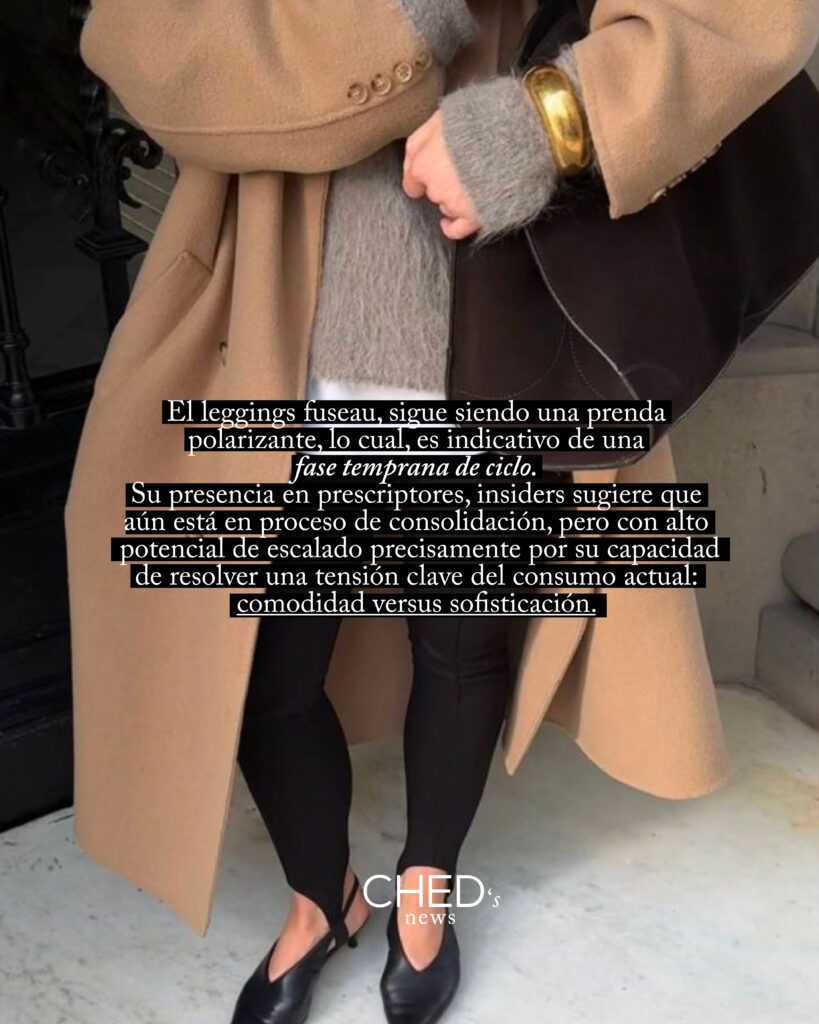 Este pantal贸n leggings re versionado responde a cambios estructurales en el estilo de vida: mayor flexibilidad laboral, valorizaci贸n del bienestar y necesidad de prendas vers谩tiles.